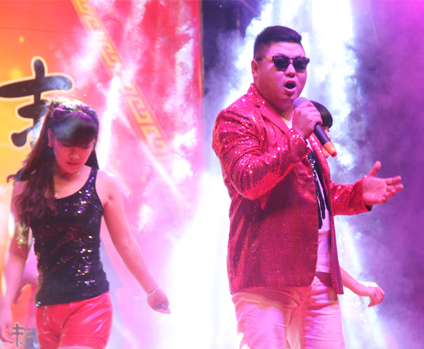 “十、九、八、七„„”隨著現(xiàn)場觀眾的倒計(jì)時(shí),晚會(huì)在舞蹈《好運(yùn)來》中拉開帷幕。晚會(huì)的內(nèi)容精彩紛呈,《你把我灌醉》在獨(dú)唱中深情舒展。獨(dú)特的女生快板《說安全》贏得臺(tái)下觀眾的好評(píng)?!洞蠊饷黜灐返莱龃蠊饷骷瘓F(tuán)輝煌的發(fā)展歷程,優(yōu)美典雅的民族舞蹈《江南雨》,曼妙的舞姿勾勒出唯美的江南圖畫。歌舞《江南Style》博得了臺(tái)下觀眾的陣陣喝彩。《我相信》歌曲將晚會(huì)氣氛推向高潮?;盍P(yáng)現(xiàn)代舞在《青春旋律》中得很好的詮釋,奔放的激情、強(qiáng)烈的動(dòng)感舞臺(tái)效果,臺(tái)下尖叫聲和掌聲連綿不絕。